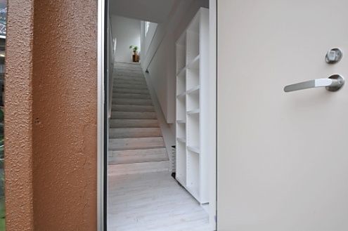 さて、赤いドアを開けると、正面にはまっすぐな階段。