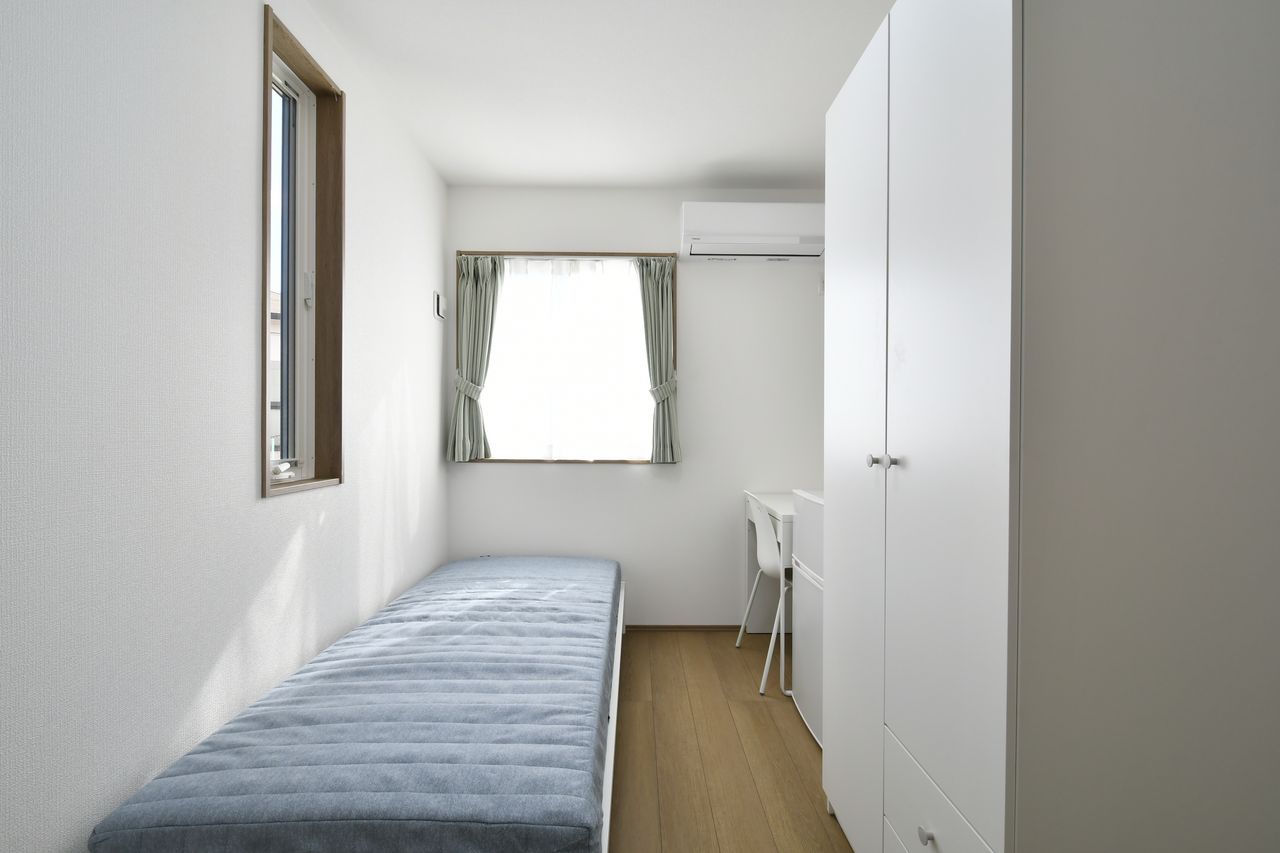 2025年6月、船橋市上山町に新たなシェアハウスが誕生しました!落ち着いた住宅街に位置し、JR船橋法典駅から徒歩20分・自転車9分。25時まで営業のスーパー、コンビニ、郵便局、ファミレスなどがそろう利便性の良い立地。西船橋駅に自転車やバスで24分とアクセスも良好で、暮らしやすさ抜群です。ハウス内は、リノベーションしたばかりで新しく、清潔感あふれる空間。青いタイルの外壁や八角形の飾窓がアクセントの愛着湧くおウチ。リビングダイニングは広々としており、入居者さん同士の交流が自然と生まれる設計です。個室はプライベートもしっかり確保できるよう配慮されています。新しい環境で、新しい出会いを見つけませんか?