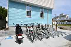 駅徒歩8分、海徒歩8分。屋上付き。空と海と街を体感する。2020年夏にシェアハウス専用設計し新築。全6部屋。間取りは、1階:ストックスペース、バスルーム・トイレ・独立洗面台、管理人室、独立シャワー室、洗濯スペース、駐車場2台、駐輪場。ロングサーボード置き場(限定2 有料)2階:広々リビングダイニング、アイランドキッチン、6畳部屋2つ。3階:5.5畳部屋が4つ、トイレ、独立洗面台。屋上は、約11畳のスペースがあります。設備も充実。バスルームは髪にやさしいエステシャワー、浴室乾燥・暖房付き。50分で乾くガス乾燥機(乾太君)、ウルトラファインバブルW洗濯機、IHアイランドキッチン、食洗機、ワインセラー、最上位ヘルシオオーブンレンジ、テレビ2台、大型冷蔵庫、豆から挽くコーヒーメーカー、トースター、炊飯器、共有パソコン、タブレット、ダイソン掃除機があります。屋上には椅子テーブル等の機材の備えもあります。また、女性専用シェアハウス 嬉しい管理人(女性)が常駐。シェアカー、シェア自転車(無料)あり。シェアハウスしながら共有スペース、設備も充実した都市型シェアハウスです。