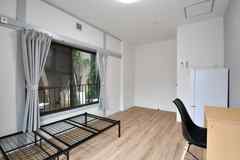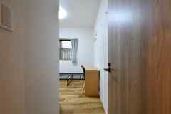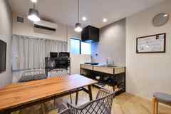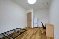 大人な雰囲気を醸し出す広々リビング、すぐ隣にはシステムキッチンが3台並ぶ調理スペースがあり、入居者通しの交流が出来るよう風通しのよい作りになっております。全62室あり、3Fは女性専用フロアとなっていて、男女別々のシャワー室もご用意!物件エントランスは電子錠になっており、セキュリティー万全です。各フロアにはトイレや洗面台、8畳の個室にはデスク・チェア・収納といった1人で暮らすには十分な設備となっております。
