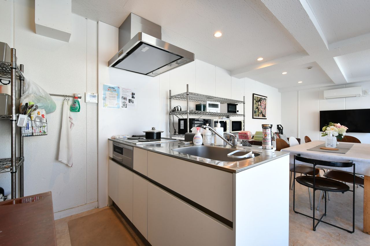 買物に生活に便利な街、本厚木。大型のアイランド型キッチンで料理を楽しんだり、ウッドデッキテラスでのんびり過ごしたり、住むほどに開放的な気持ちになれるシェアハウスです。