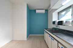 シンプル×可愛い。水色の冷蔵庫付きのお部屋。白楽駅9分