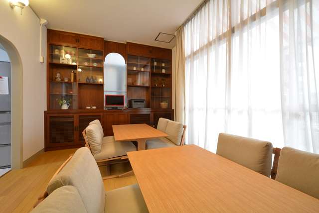 小田急線本厚木駅近くの市街地にある女性専用シェア住居です。駅前のメイン通りより1ブロック内側の、市民が集う公園に接した場所にあり、ショッピングや食事に便利な立地です。エントランス、ダイニング、リビングは天井が高く、たっぷりの収納スペースがあります。リビングにはチークのテラス材を敷き詰めた広くて気持ちの良いバルコニーが付いています。