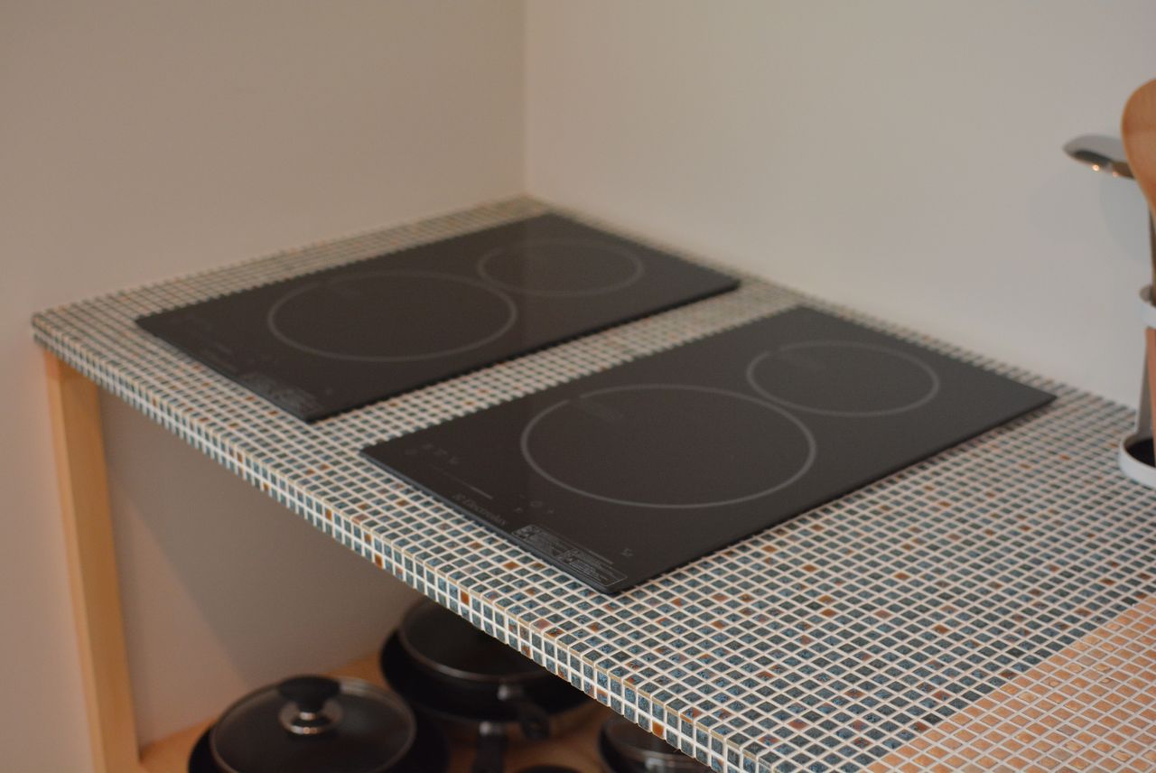 シンクとIHヒーターの間はタイルの色が変わっていて、ちょっとしたアクセントになっています。