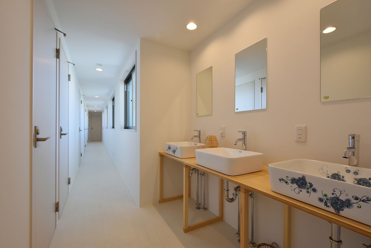 廊下の手前側は洗面スペース。朝の準備や寝る前のスキンケアだけでなく、手を洗いたいときや部屋のグリーンに水をあげたいときにも重宝します。