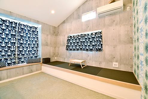 温泉の休憩室をイメージしたそう。囲碁盤や将棋盤を置いて打ち合うなんていうのも、良いかもしれません。