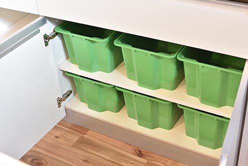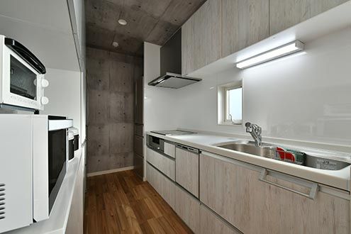 キッチン家電の上下には、専有部ごとの収納スペース。