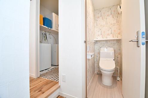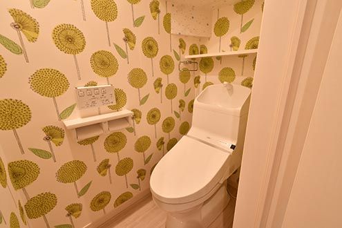 トイレは、1Fと異なる柄の壁紙。