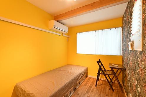 203号室は、レモンを連想させるビタミンカラーの壁紙。