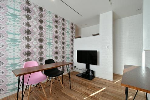 専有部ごとに特徴的な壁紙で、あれもこれもと色々な部屋を試したくなります。