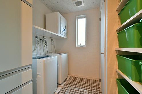 ランドリールームは、洗濯機が2台と乾燥機が1台。