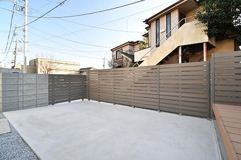 外塀のブロックで目隠し。