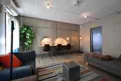 日中は陽が差し込み明るく気持ちいいラウンジスペース。日が落ちると、恵比寿の雰囲気にマッチしたムードのある空間に。オトナなひとときはいかが?