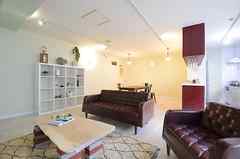 日中は陽が差し込み明るく気持ちいいラウンジスペース。日が落ちると、恵比寿の雰囲気にマッチしたムードのある空間に。オトナなひとときはいかが?