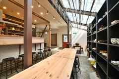 日中は陽が差し込み明るく気持ちいいラウンジスペース。日が落ちると、恵比寿の雰囲気にマッチしたムードのある空間に。オトナなひとときはいかが?