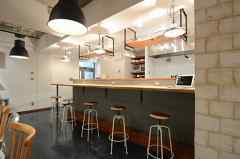 日中は陽が差し込み明るく気持ちいいラウンジスペース。日が落ちると、恵比寿の雰囲気にマッチしたムードのある空間に。オトナなひとときはいかが?