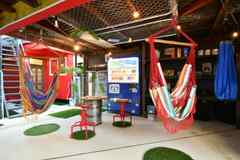 日中は陽が差し込み明るく気持ちいいラウンジスペース。日が落ちると、恵比寿の雰囲気にマッチしたムードのある空間に。オトナなひとときはいかが?