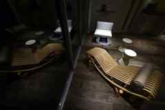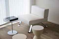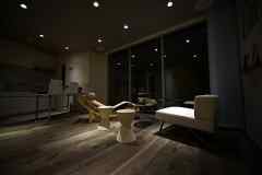 日中は陽が差し込み明るく気持ちいいラウンジスペース。日が落ちると、恵比寿の雰囲気にマッチしたムードのある空間に。オトナなひとときはいかが?
