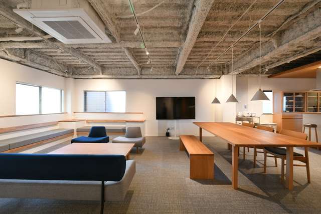 日中は陽が差し込み明るく気持ちいいラウンジスペース。日が落ちると、恵比寿の雰囲気にマッチしたムードのある空間に。オトナなひとときはいかが?