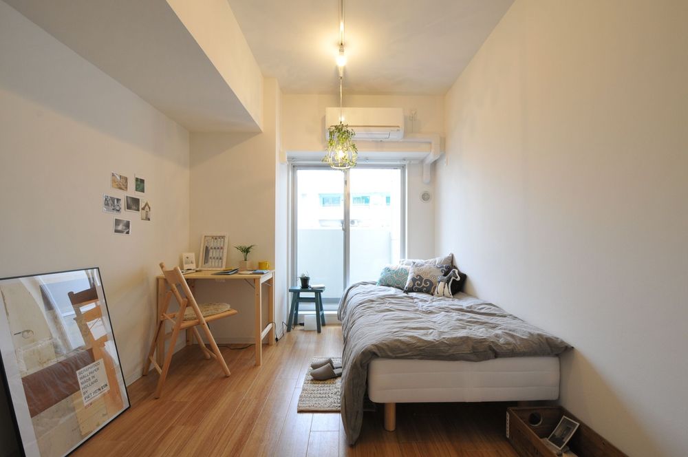 標準仕様では机・椅子・ベッド・冷蔵庫・エアコン・照明を備えます(※机・椅子・ベッドなしの部屋もあり)。南側は日当たりがよく、北側は駒沢の街を一望できます。幹線道路沿いのため、現地で実際に比較すると◎。 ※写真は903号室(モデルルーム)
