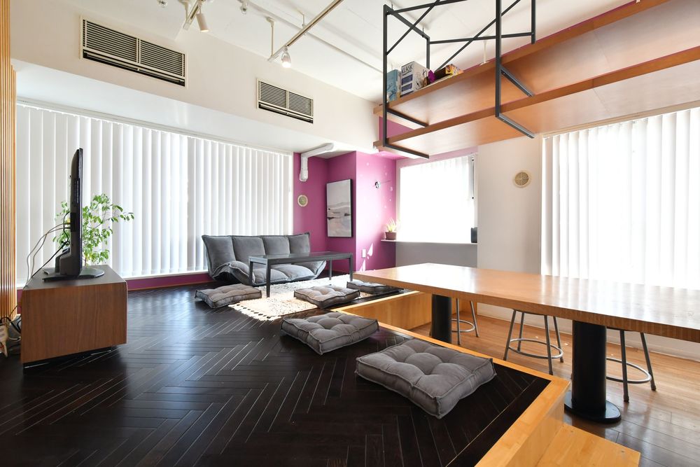 高層階ならではの開放的な眺望で自由にゆったり過ごせる空間は、12階に。天気の良い日には横浜や富士山まで見えるとか。時にはくつろいでボードゲームをしたり、掘りごたつ風に鍋を囲んでみるのも楽しそう。