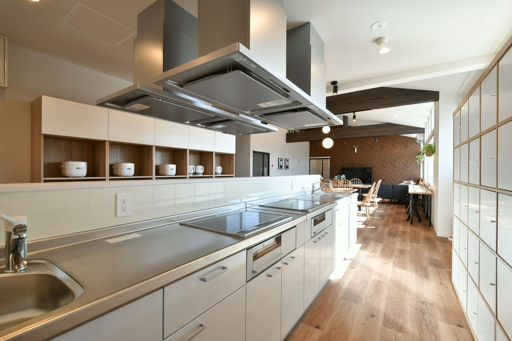 向かい合わせに配置された4台のキッチンは、すべて大きめのゆったりサイズ。IHコンロに調理機器類、さらに部屋別の収納スペースもきちんと用意されています。食事時には、すこし賑やかな調理の音と、食欲を刺激するおいしい香りが漂ってくるはず。遅くまで営業するスーパーがひしめく中央線沿線らしい土地柄もあり、充実した食生活が楽しめそうです。
