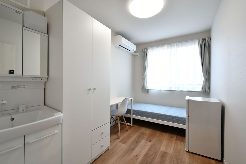 新築の全50室。すべての部屋に洗面台が付いているのは、嬉しい人も多いはず。冷蔵庫も各部屋に備え付け。日当たりの良さはもちろん、2026年新築ということで、断熱や防音性能にも優れたサッシを選択してあるのだそうです。 ※写真は211号室