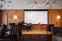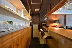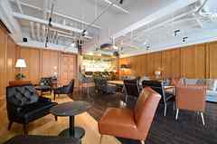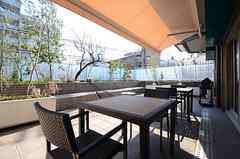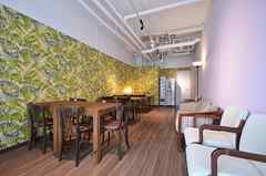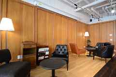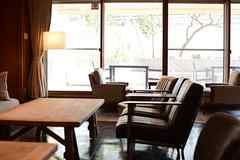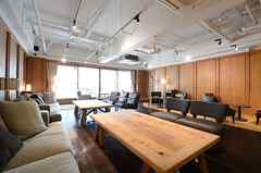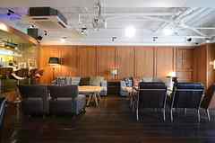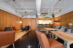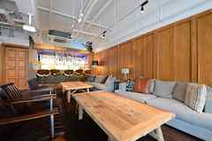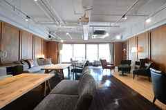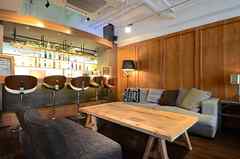 日中は陽が差し込み明るく気持ちいいラウンジスペース。日が落ちると、恵比寿の雰囲気にマッチしたムードのある空間に。オトナなひとときはいかが?