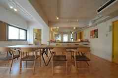 上野・御徒町エリア、浅草エリアまで歩いて15分ほどの立地にある、”おうちカフェ”なシェアハウス。1Fダイニングへの入り口の引き戸を開け放てば、まるでオープンカフェのよう。毎日忙しくしている人も、休日はホームベーカリーでパンを焼き、コーヒーにこだわり、ゆったりした朝を過ごす、そんな時間を満喫できます。おもしろ調理器具の揃う大きめキッチンは、おもてなしの場所。ヌードルマシーンや石釜ロースターをつかって、粉から手作りの生パスタ、本格石釜ピザをつくり、みんなでわいわいお料理を囲むのも、たのしみのひとつ。おいしいものがあれば、自然と笑顔と会話がはずむはず。4Fにもリビング&キッチンがあり、こちらのリビングでは靴を脱いでくつろげます。個室のドアの色は4色。部屋番号のサインやメッセージボードはゆるーいデザイン。ホテルのような、お店のような雰囲気です。新宿まで都営大江戸線で18分、新御徒町駅から徒歩3分。どんどん盛り上がっていくイースト東京!このエリアは発見がいっぱいです。カフェにいるような心地いい空間。コーヒーを入れて本をおともに、ゆっくり時間をたのしむカフェスペース。料理をたのしむための大きめキッチンでは、すきな人たちを招いておもてなししたい。おいしいごはんを通じて人とつながる、そんなシェアハウスです。