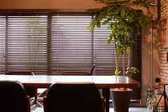 日中は陽が差し込み明るく気持ちいいラウンジスペース。日が落ちると、恵比寿の雰囲気にマッチしたムードのある空間に。オトナなひとときはいかが?