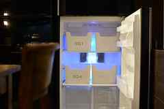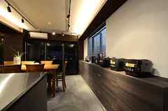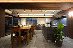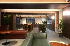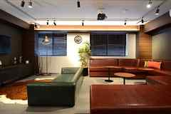 日中は陽が差し込み明るく気持ちいいラウンジスペース。日が落ちると、恵比寿の雰囲気にマッチしたムードのある空間に。オトナなひとときはいかが?